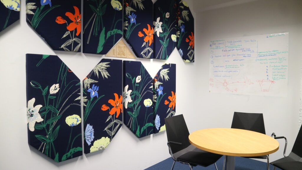Our acoustic bio-foam made of wood-based materials can be utilized as standing room dividers, wall and ceiling acoustic panels, furniture and even building insulation.